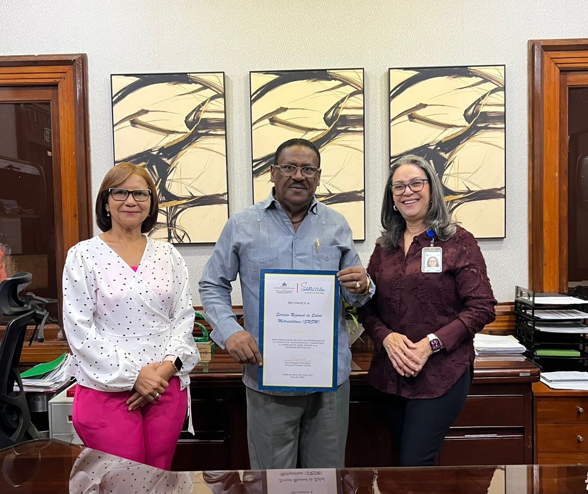 Este reconocimiento, recibido por Tomasina Ulloa, encargada de la Oficina de Acceso a la Información (OAI), y por Bernarda García Rivera, encargada de la División de Abastecimiento de Medicamentos del SRSO, lo entrega la DIGEIG, que dirige la doctora Ortiz Bosch, a las instituciones que cumplen con los estándares establecidos en la Transparencia y el Libre Acceso a la Información para la ciudadanía.