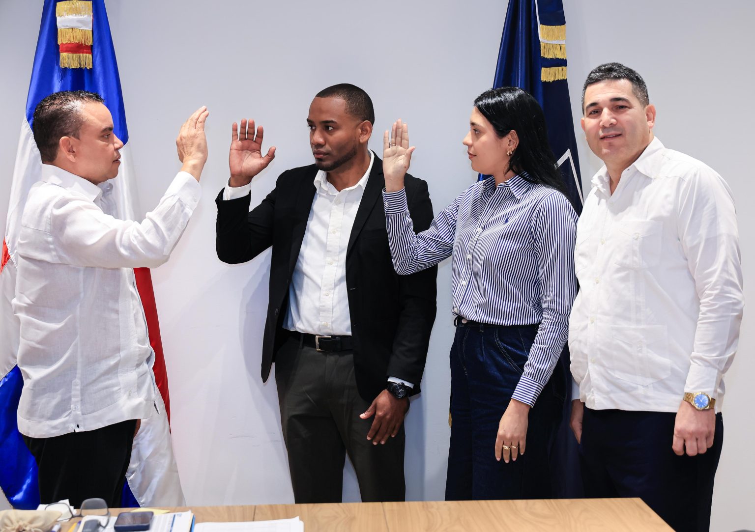 El director ejecutivo del Servicio Nacional de Salud (SNS), doctor Julio Landrón, juramentó al nuevo director y a la subdirectora del Hospital Municipal de Villa Los Almácigos, en la provincia Santiago Rodríguez.